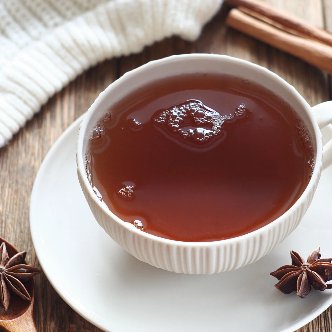 Préparation : chauffe l’eau sans la faire bouillir, ajoute la badiane et les épices, laisse infuser 5 à 10 minutes, filtre et savoure doucement.
